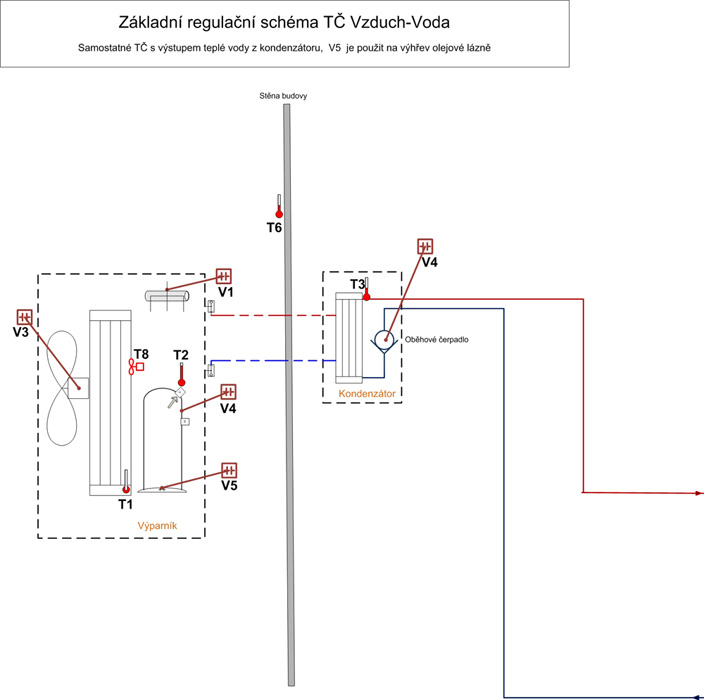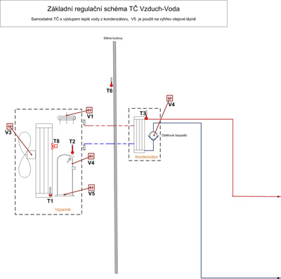 Regulační hydraulické schéma řeší autonomní funkci TČ a jeho spouštění je vyžádáno řídícím signálem. Jediné schéma bez akumulační nádrže. Před aplikací tohoto schématu je nutné zabezpečit dostatečný odběr topné vody, např. existující akumulační nádobou.