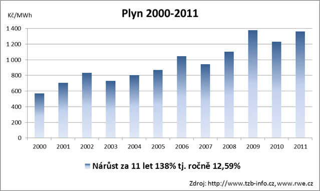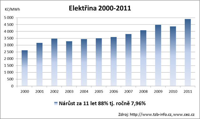 Na níže uvedených grafem můžete vidět, jaký je vývoj energií v České republice za posledním 10 let. U elektrické energie je to od roku 2000 průměrné zvýšení cen o cca 8 % a u zemního plynu „ šplhá „ průměrné zdražování k 11 % ročně.